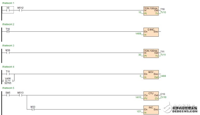 2:软元件数量极多,计时器居然有1024个,远远超过其他品牌同档次PLC。软元件断电保持区域可随意设置,每一个计时器时基可随意设置,这两个功能让人眼前一亮。