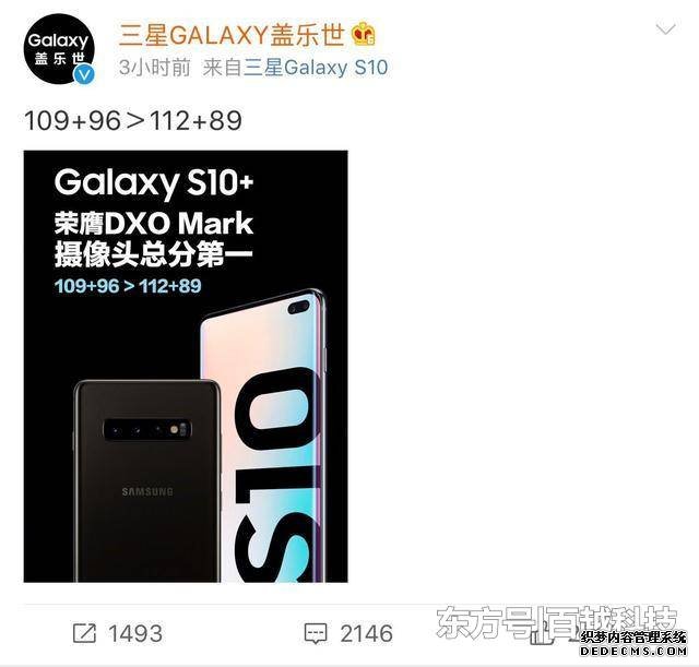 此外,三星Galaxy官方还表示:“Galaxy S10+荣膺DXO Mark摄像头总分第一,109+96>112+89”,三星S10+的主摄拍照得分109分,而自拍得分96分;华为P30 Pro拍照得分112分,自拍得分89分,因此在总分上,三星S10+胜出。2018年三星在中国区销量不佳,占据市场不再1%,仅0.7%,今年推出Galaxy S10系列,比S9提升很大,价格更便宜,想要在中国打一场漂亮的翻身仗,结果被华为P30 Pro全球发布会上吊打了,任谁都发火!