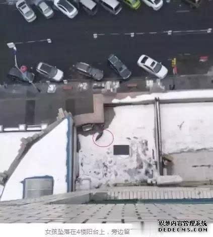 孩子掉落在6楼门面房的阳台上,万幸的是,邻居发现异常赶紧拨打了报警电话。
