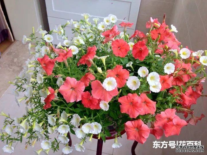 养矮牵牛,并不是枝条越长越好,枝条长度在20厘米(不包括花朵)是比较好的状态。枝条过长会影响开花数量,应该及时修剪。