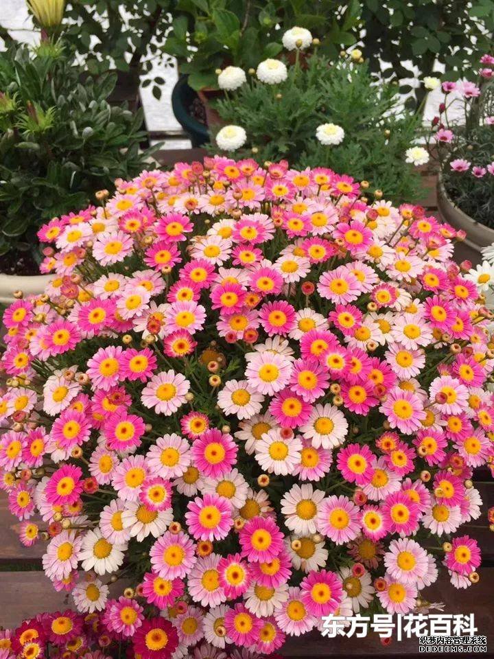 玛格丽特是多年生的灌木,花期2-10月,开完花及时修剪,可保证下一次开花更快更多,来回修剪2-3次,就能长成大花球。