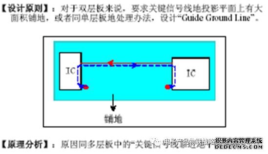 (2)布线层应安排与整块金属平面相邻。这样的安排是为了产生通量对消作用。