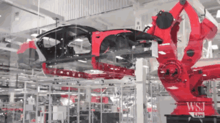 在特斯拉工厂,高柔性的M-2000iA能搬运不同车型的白车身在输送线间流转