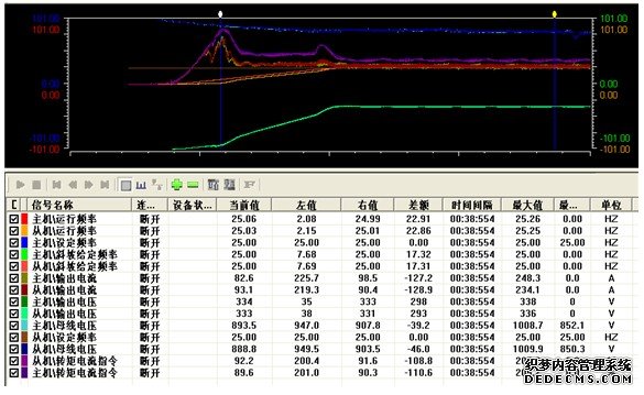 此次CHV190中压变频器在双滚筒分别驱动带式输送机上的应用,主机传给从机的信号,采用了转矩信号和电流信号,两者都能实现功率均衡效果。从机在采用速度控制模式下,完全能满足现场带式输送机的运行要求,运行稳定。完全到达了带式输送机的运行要求和用户的要求。具体效果分析如下: