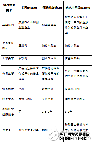 (3)上市要求:上市公司需要持续经营二年以上、无运行利润要求。因此更加接近美国纳斯达克,有利于创业型企业的融资。