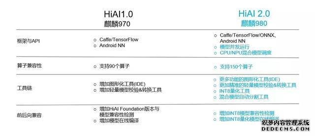 2、开发友好性进化,HiAI 2.0带来的开发者体验大幅升级,普惠AI开发成为可能。HiAI 2.0相比HiAI 1.0支持更多的框架,由90算子升级到150个,工具链和兼容性上完成了全面升级。基于HiAI Foundation的集成开发周期,由原先的3个月缩短为1周。开发者友好性的不断进化,直接培养出了更多新锐AI应用可以在HiAI平台上诞生并落地,这也让移动AI推进下一幕变为了可能。