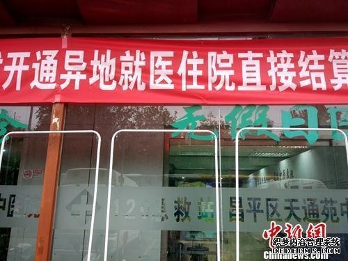 资料图:北京一家医院门口悬挂着开通跨省异地就医直接结算的横幅。中新网记者 李金磊 摄