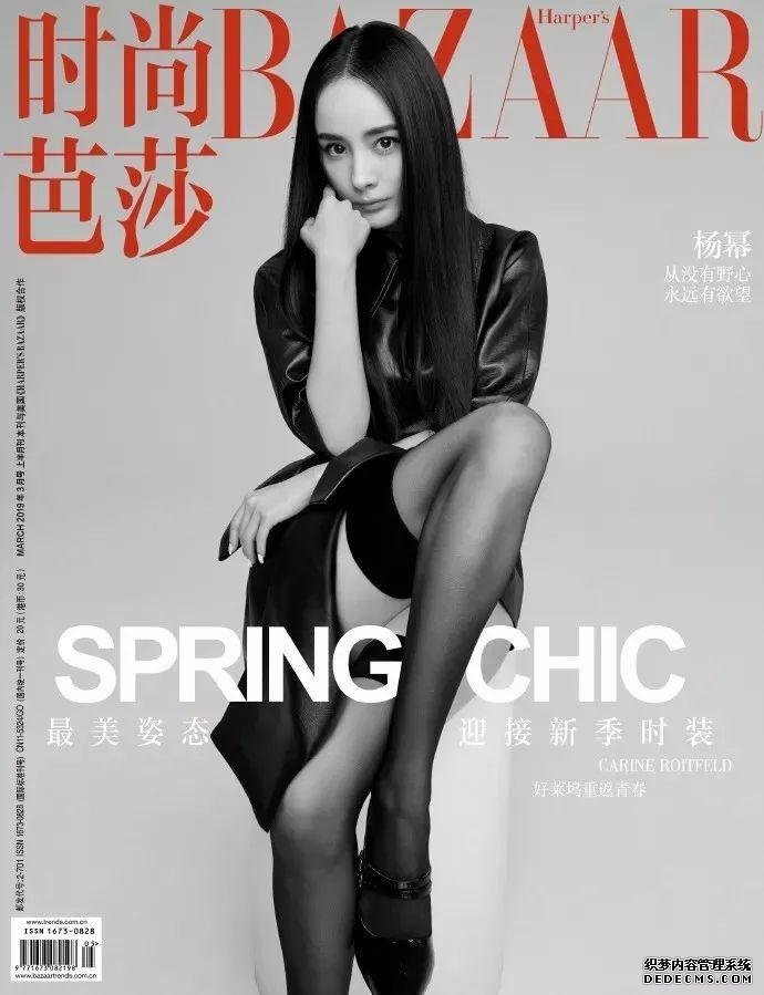 还有娱乐圈妈妈团杨幂,近日登封《时尚芭莎》3月上封面,”从没有野心,永远有欲望“,“腿精”上身,最美的姿态展示女性的职业美。