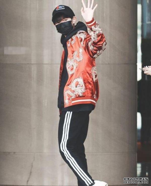 王源的私服才是最大的亮点,他的私服造型有时候还是会给人很大的惊喜的,比如这一身。王源穿的是一件黑色的连帽卫衣,内搭白色T恤,这样看还是比较简单的搭配,但是王源穿的红色外套设计却是有点特别,上面有金色的龙纹刺绣图案,满满都是中国风。