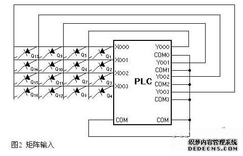 使用时应注意的是除按照上图进行接线外,还需要对应的软件来配合,以实现Y0~Y3的轮流导通;同时还要保证输入信号的宽度应大于Y0~Y3的轮流导通一遍的时间,否则可能丢失输入信号。缺点是使输入信号的采样频率降低为原来的三分之一,而且输出点Y0~Y3不能再使用