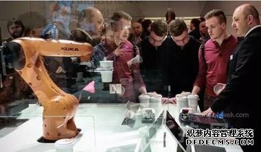 德国jrs英超直播吧_jrs直播_极速体育nba直播吧制造商库卡公司在本届展会上通过一个名为咖啡4.0的应用,解释了其对工业4.0实践应用的设想。顾客在定制咖啡前,先领取一个带有二维码的咖啡杯。然后,通过智能手机扫一扫,顾客便可以在手机上定制自己喜爱的咖啡种类,以及牛奶和糖的用量。