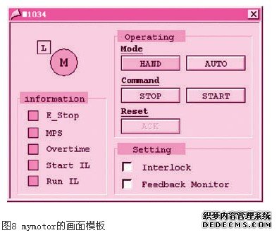 根据操作员的操作习惯及一些人性化考虑,为每个设备对象编制画面模板,每个画面模板对应一个fb,pcs7中的faceplate就是这种方式,只是功能多了很多,如图8所示。