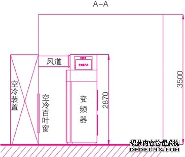 其工作原理是:将变频器的热风通过风道直接经过空-冷装置进行热交换,由交换器内部的冷却水管道与热空气进行非介质接触式交换,直接将变频器散失的热量带走,避免变频器对室内环境形成加热作用。空冷装置的供水压力在0.25~0.35mpa、冷水温度不大于33℃时,即可保证热风经过热交换器后,将变频器室内的环境温度控制在40℃以下。从而,保证了变频器室内良好的运行环境。