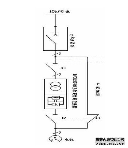 为了充分保证系统的可靠性为变频器加装了工频旁路装置,当变频器故障时变频器停止运行电机可以直接手动切换到工频运行同时不会影响对变频器的检修如图4.1所示。