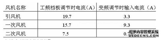 由于在相同条件下风压和流量的大小与电机电流的大小成正比所以这里只用工频运行档板调节时的电机电流和变频调节时变频器的输入电流作一比较从而说明节电效果。