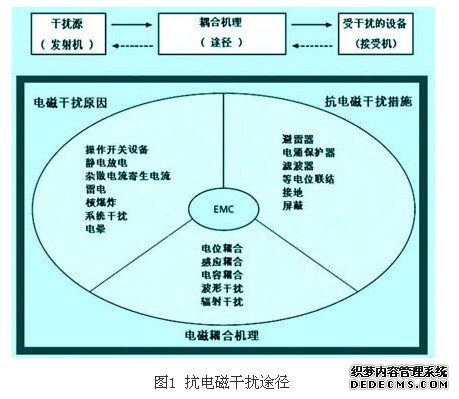 在安装和调试自动化系统或监控系统时,通常从三方面着手:即找出干扰源,即干扰来自系统本身或外部其他原因;采取措施,隔离或切断传播干扰的途径(也称耦合机理);提高系统和设备自身抗电磁干扰的能力。见图1。