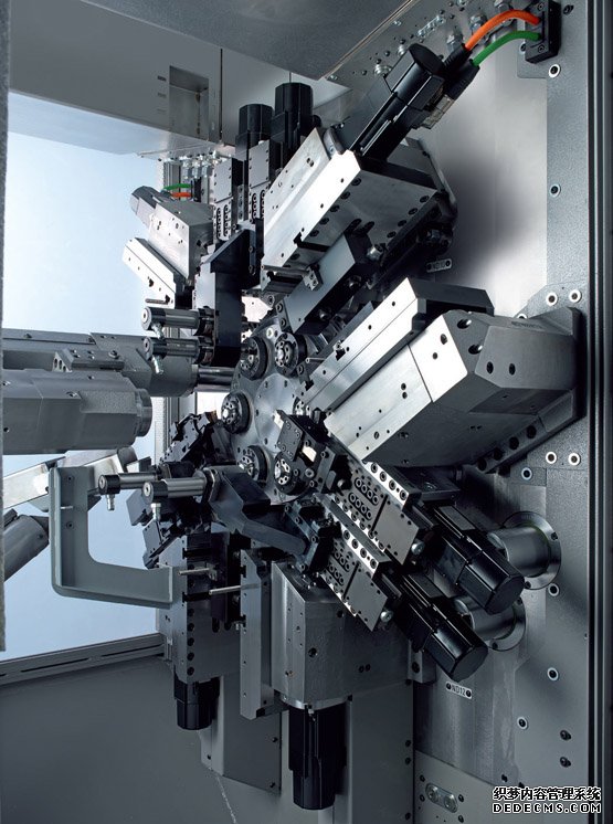 INDEX的数控系统不仅可以控制各工作主轴速度,更可控制各刀具轴,且运用HIRTH联轴器可为所有主轴分度位置提供最好的精度,可使主轴架达到非常高的重复定位精度。在同系列产品的生产中,十分钟内即可更换程序和刀具,而不用更换齿轮、凸轮配件等,无需夹取装置提供工件定位,从而达到更高的精度。配备的同步主轴,还可以在一个工序循环内对高精度和复杂的背部外形进行加工。送料轴(Z轴)静压导轨具有出色的阻尼特性,可防止加工振动通过当前刀架传至邻近的滑架,从而有助于缓解加工过程中产生的振动,即使六轴同时加工也非常稳定。