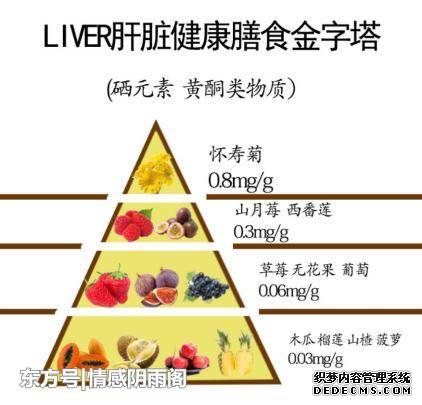 黄酮类化合物——可以提升肝脏SOD活性、抑肝组织脂质过氧化、减少肝组织脂褐素形成。对中毒性肝损伤、急慢性肝炎、肝硬化等有良好的作用。参考《LIVER肝脏健康膳食金字塔》摄入硒元素和黄酮类物质,每日摄入约1-3mg即可,如下图: