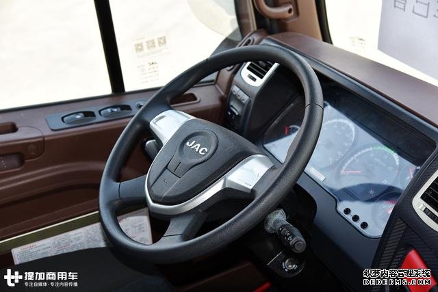 方向盘是江淮的经典的盾形方向盘样式,可以说除了K7,整个车系都在沿用该款式的方向盘,包括轻卡在内,唯一不同的是高配会集成多功能按键。