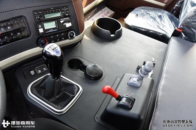 驾驶室并非平地板设计,中间还是有一个大大的鼓包,但K5却把这块儿空间利用的很好。除了排列着档位杆以及驻车阀等常规部件外,这块儿空间还预留了两个杯槽,当然,用来放烟灰缸或打火机也可以。