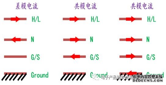 差模电流:往返于L和N线(或信号线与回流线)之间,并且幅度相同相位相反的电流.