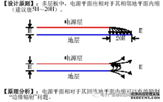 (1)电源平面应靠近接地平面,并且安排在接地平面之下。