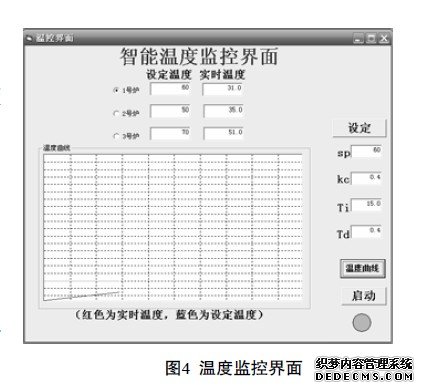 MSComm1.PortOpen= True//打开通信端口.计算机端的VB程序利用MSComm 控件与S7-200交换数据,通过自由口通讯程序从现场采集温度信号.并且上位机程序可以设定初始温度和PID参数、显示动态温度曲线.程序运行界面如图4所示。
