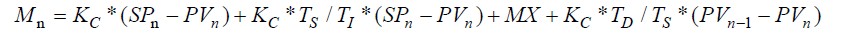 对于模拟量信号的控制PID(比例+积分+微分)算法控制。S7-200 系列PLC有专门的PID回路指令, 对模拟量进行PID控制十分方便。PID指令使用的算法:( n SP 为第n个采样时刻的给定值, n为过程变量值, MX 为积分项值)