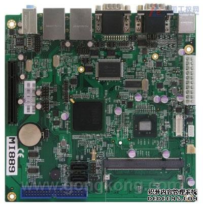 主板尺寸仅为:(170mm x 170mm) 的MI889支持Intel Atom N450 (单核)或D510 (双核) 处理器及Intel 82801HM I/O 控制器. 2GB的non-ECC系统内存支持DDR2插槽, 支持双显(可选VGA接口和LVDS接口), 双千兆网口,4组串口,2个SATA接口和8个USB 2.0接口.MI889集成了内存控制器和IGP图像芯片, 为图像解析,多媒体和嵌入式等方面应用提供更好的硬件解码.