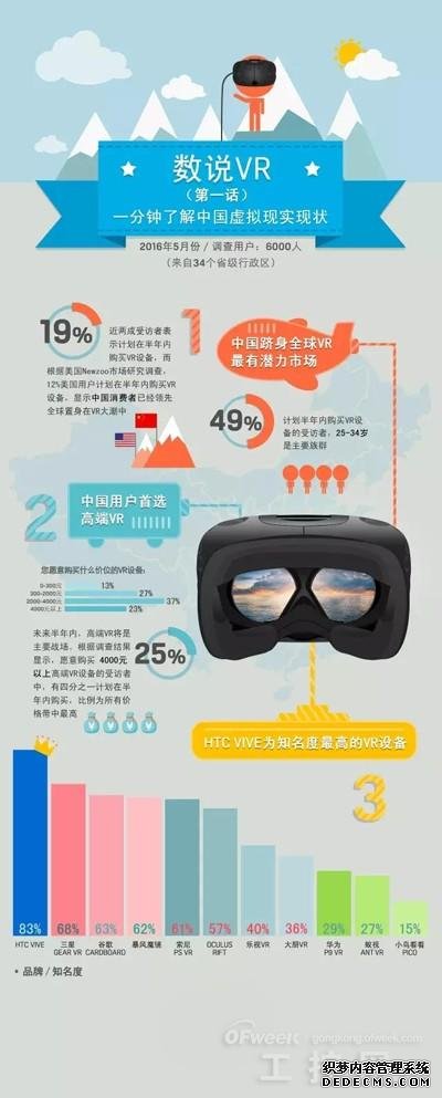 本次调查共计有超过6000人参与,交叉比对各项数据后,推出一系列数说VR资讯图文,勾画出了VR市场大图像。现在,跟着小编一起看:数说VR第一话,教您一分钟了解虚拟现实现况。