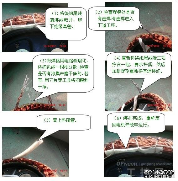 针对目前市场上反应的电动车负载有抖动、不启动等现象,现已分析得出结论,其中大部分是绕组尾端有虚焊现象造成。针对这一问题,制定了相应的维修步骤及方案,具体维修操作如下: