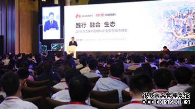 11月18日,华为还与中国电子科技集团公司(简称中国电科)在深圳共同举办新型智慧城市峰会,共计660多位来自75个地市的城市客户和合作伙伴参加了峰会。深圳市副市长陈彪、国家标准化管理委员会工业二部主任戴红、国家信息中心常务副主任杜平、中国电子科技集团公司副总经理张冬辰、华为企业BG中国区总裁蔡英华出席并致辞。围绕践行智慧城市,行业专家和深圳、上海嘉定、潍坊等城市代表以及主办方华为和中国电科分享了智慧城市行业动向和实践经验。