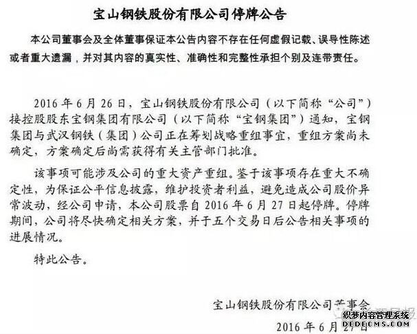 今天下午,武钢股份和宝钢股份发布停牌公告,宣布两家上市公司的母公司武钢集团和宝钢集团正在筹划战略重组事宜。目前重组方案尚未确定,并且需要国资委等相关主管部门的批准。