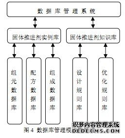 数据库管理模块:系统的数据库管理模块包含了固体推进剂的规则库、实例库、综合数据库(中间数据库)。数据库管理模块不但可以进行静态数据库操作,还可以在系统运行过程中进行动态的数据交互。 数据库中的数据的积累和数据结构的合理性是整个专家系统能否有效运行的基础,该模块组成如图 4所示。