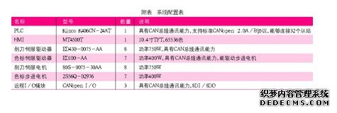 附表为系统配置表。