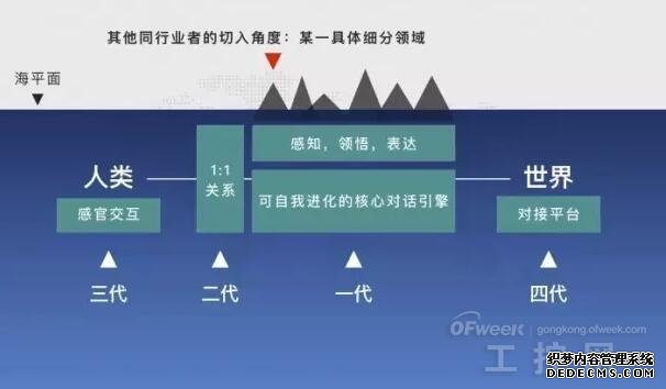 在小冰的发布会上,陆奇继续为小冰布道。他认为,在人工智能对话的前提下,一些行业同仁,想要先解决一个具体领域的问题,比如说订机票,或者订外卖。这可以看成是一片海水,上面一个冰山,如果要解决这样一个问题,可以从这个地方进入,像进入一个火山口一样。但是,小冰团队发现,行业同仁要往下做深,就会发现缺乏基础的能力,缺乏很多真正需要解决的大问题,他们就会找小冰做合作。我们做合作交流的发现,他们需要解决的问题都是小冰在过去两年中努力追求要解决的问题。陆奇说。