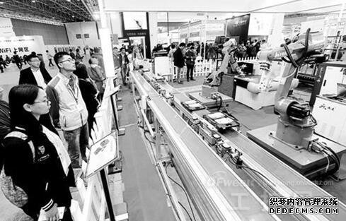 第13届中国光谷国际光电子博览会上,参观者观看华中数控展示的国家首个3C智能制造示范工厂。
