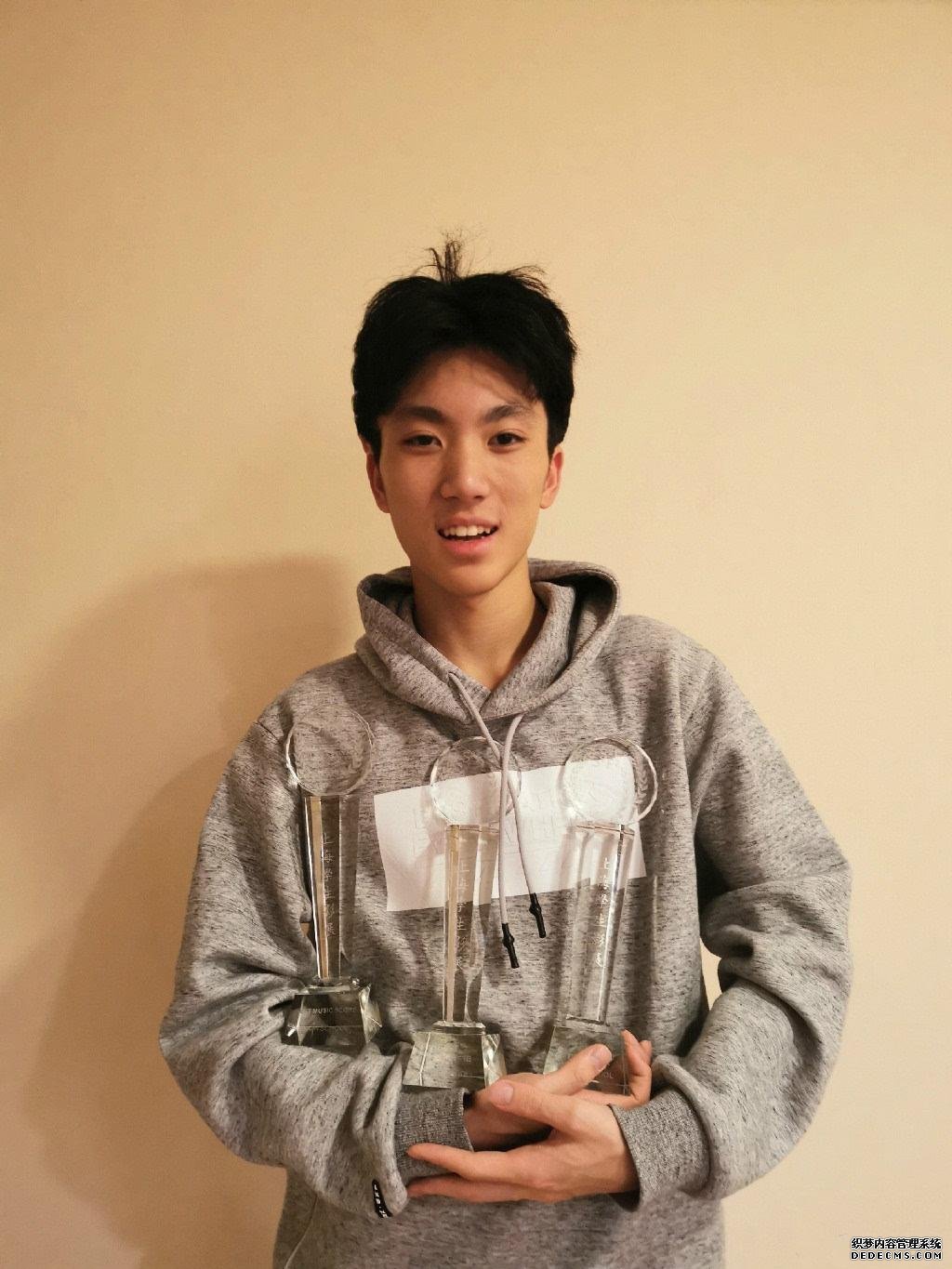 陈婷言语里是满满的骄傲,三个水晶奖杯在光线下熠熠发光。