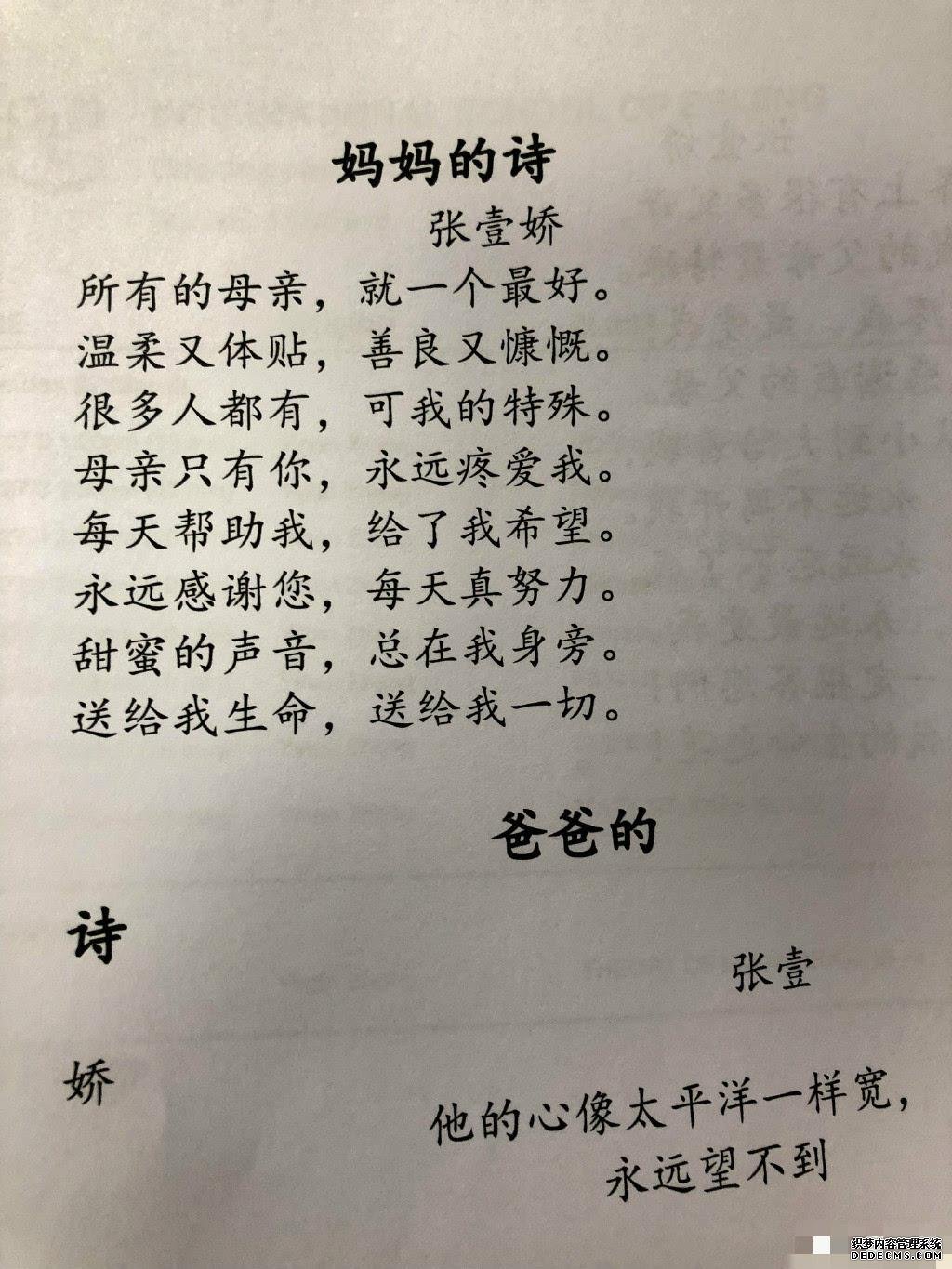 还是个孝顺孩子,会给爸爸妈妈写诗。