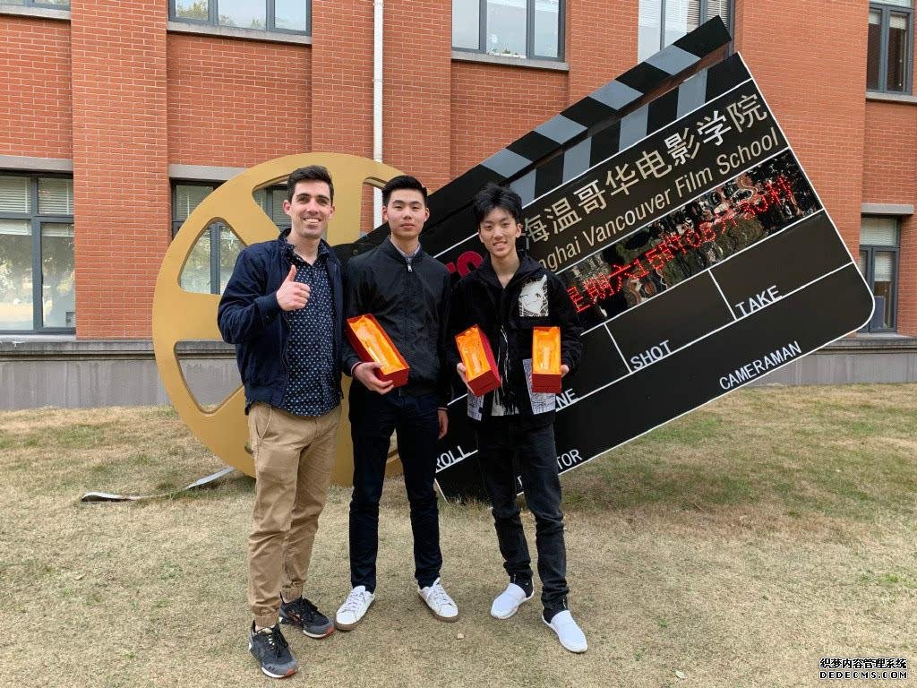 张艺谋的大儿子张壹男和自己的团队站在一起,意气风发的举着奖杯。