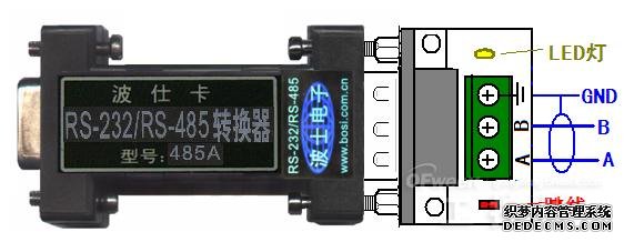 将485A的DB-9孔头直接插到标准RS-232针座上,看接线端子上的LED灯是否亮即可判断RS-232口是否有信号。由于485A从RS-232口的信号上窃电,所以RS-232有信号则LED灯就亮。这样同时也可以判断485A基本上是好的,因为至少485A的窃电电路部分是工作正常的。