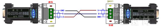 端子端子板中间红色的是跳线,由于选择是否接120欧姆终端电阻,这个电阻已经焊接在接线端子板的反面。一般不短接跳线,就是无需加终端电阻。只有在距离较远,速率比较高时才需要。485A就是一个半双工的RS-232/RS-485转换器。