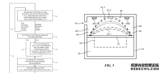在扬声器洞孔或者接口处会放置隔膜,它可以用传感器电路吸入、捕捉或者阻挡各种样本材料,比如空气和水。用扬声器系统防水并不是什么新鲜的技术,Apple Watch Series2就做到了,不过,隔膜的运动可以用来更新样本材料,确保读取的数据更精准。