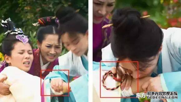 刘涛在花园里散步不小心被蛇咬了,众人都慌作一团了。此时,孙俪二话不说过来帮忙吸出毒血,大赞!此处哪里穿帮呢?观众们请看,前一个镜头刘涛的手上毫无东西,下一秒却多了个彩色手环