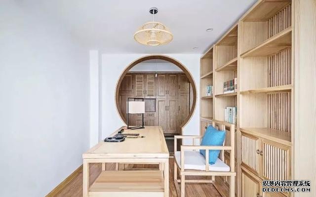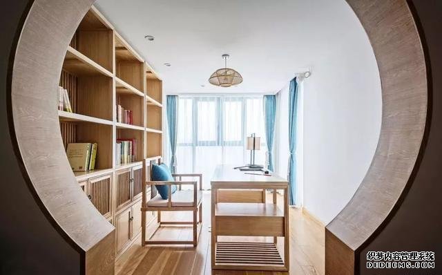 ▲ 书房虽然利用了一半的阳台面积,与另一边阳台之间用一张折叠门来区分,再配上客厅的圈椅搭配看起来安逸舒适。