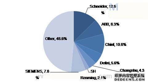 在品牌分布方面,外资品牌和国产品牌各占半壁江山,市场上在低压断路器产品方面,主要品牌有施耐德、ABB、西门子、正泰、常熟、德力西、上海人民、北京人民、浙江人民、华通机电、杭州之江等品牌。