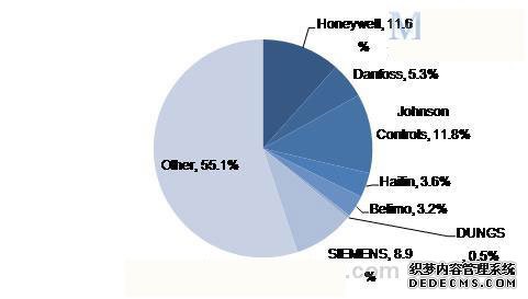 目前国内市场上BAS系统制造厂家较多,行业集中度不高,前几大厂家占据了不到50%的市场份额。国外品牌占据了中国BAS系统的大部分市场,主要品牌为欧美和日系品牌。其中霍尼韦尔、江森自控和西门子的市场份额占据前三。