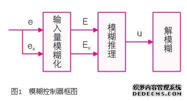 模糊控制器包括输入量模糊化、模糊推理和解模糊三部分。e和ex分别为e和ex模糊化后的模糊量,u为模糊控制量,u为u解模糊化后的精确量。